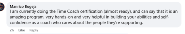 - Time Coach grad"I have done 4 coaching certifications. And this was phenomenal value."